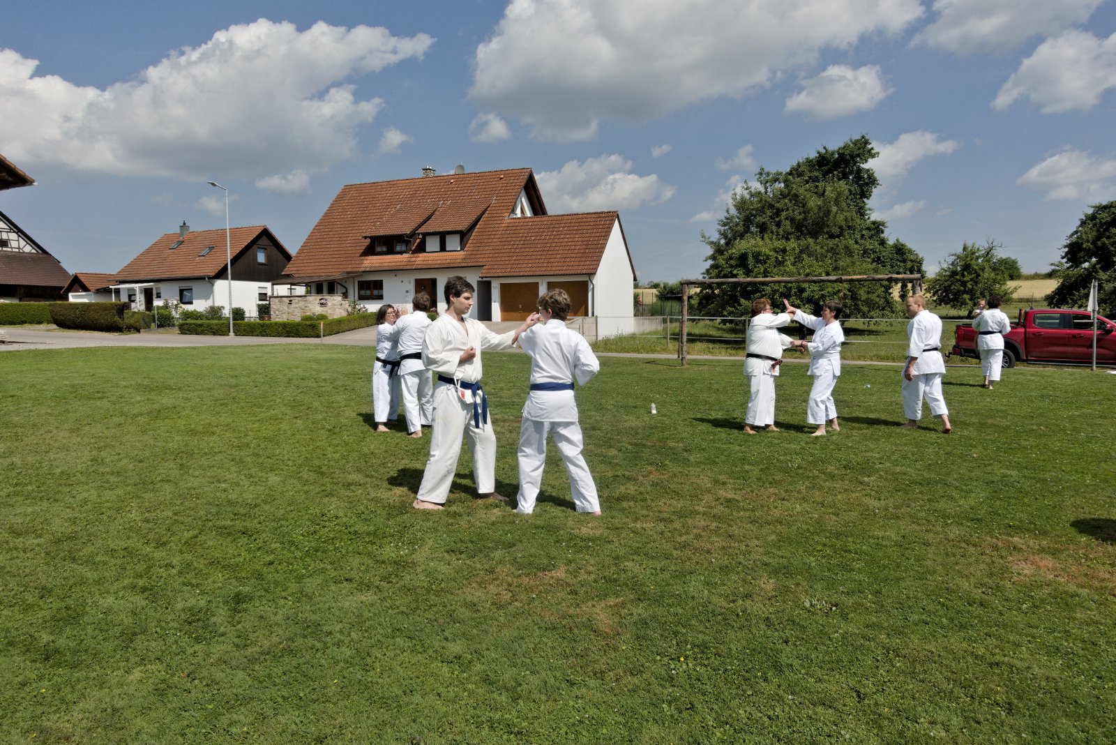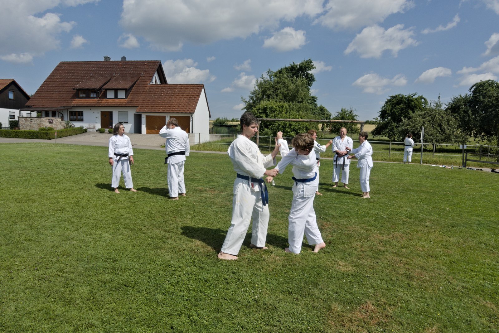 Dieses Jahr durften wir wieder zu unserem internen Karate-Sommercamp mit Horan Shūkōkai Schörzingen in die idyllischen Provinz von Kreenried im Süden Baden-Württembergs fahren. Das Seminarhaus „Natürlich“ liegt neben einer kleinen Kapelle, und das regelmäßige Läuten der Glocken ist sehr angenehm. Beim ersten Mal störte uns das Läuten der Glocken ein bisschen im Schlaf, aber seltsamerweise empfanden wir es dieses Mal — für mich das dritte Mal — nicht mehr als so störend. Es ist wunderbar, sich daran zu gewöhnen. Sowohl morgens als auch abends genossen wir die Mahlzeiten im angenehmen Sonnenschein und füllten unsere Mägen zur Vorbereitung auf den Lehrgänge.